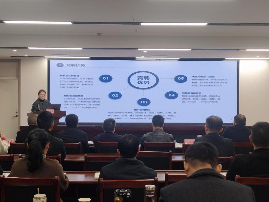 會(huì)上,競(jìng)聘人員通過(guò)演講、PPT展示的方式,圍繞競(jìng)聘崗位,提出推動(dòng)各自所在企業(yè)市場(chǎng)化、實(shí)體化工作思路,全方位、多角度的展現(xiàn)出了個(gè)人競(jìng)聘優(yōu)勢(shì)。